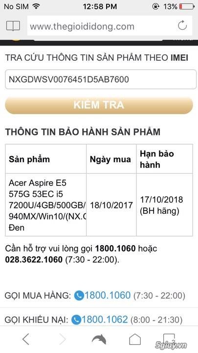 Acer Aspire E5 575G I5 7200U Card 2G 1920x1080 Fullbox BH 1 năm