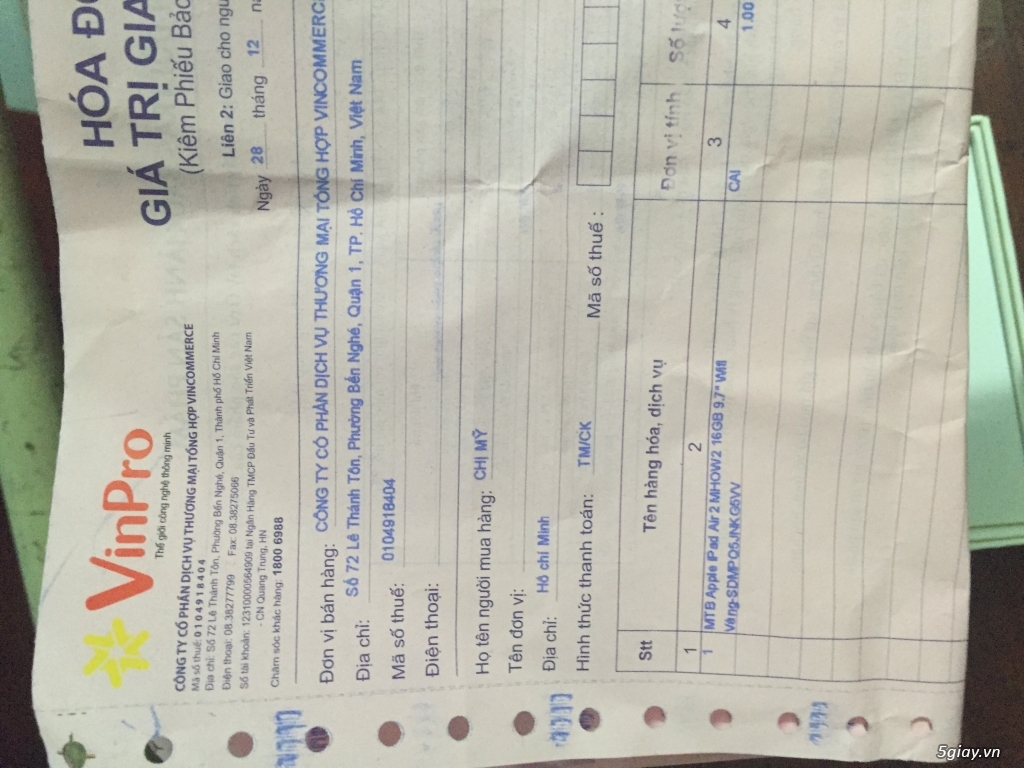 Tablet: iPad Air 2Tình trạng: Đã sử dụngGiá bán: 6,100,000 đĐịa chỉ liên hệ: 18/10 lê Đức thọ, Quận Gò Vấp, TP.Hồ Chí MinhNgày đăng: 17/11/17 lúc 11:35Điện thoại liên hệ:0908796980