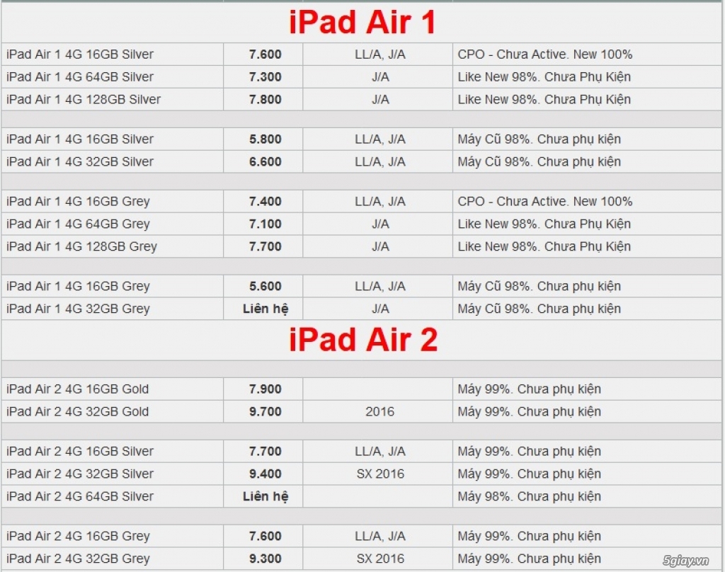 ipad Air 1, iPad Air 2 mới về hàng giá tốt