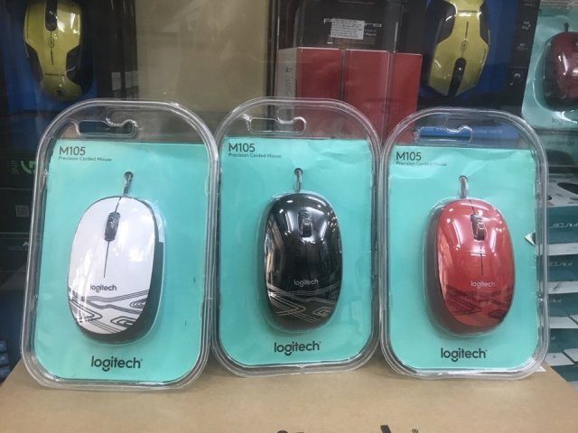 Chuột Logitech M105 hoa văn đỏ, trắng, đen chính hãng cho máy vi tính