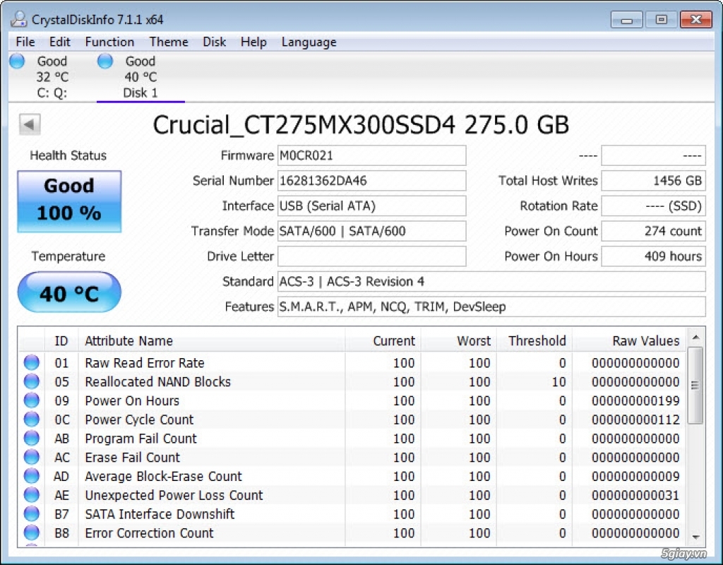 Ổ Cứng SSD M.2 Crucial MX300 275GB