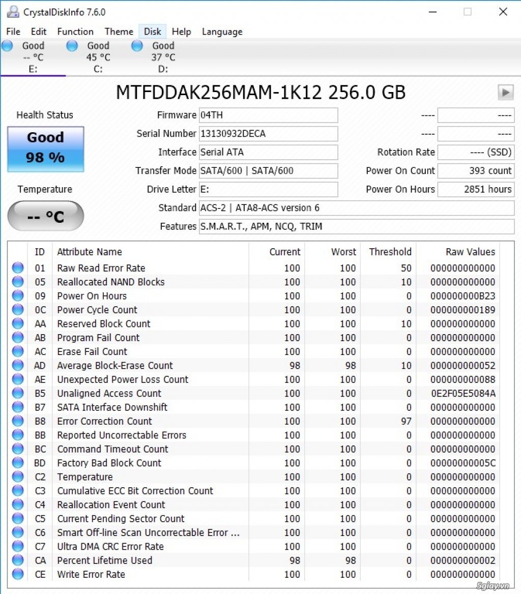 SSD 256 Gb (6gb/s) Micron tháo Laptop US